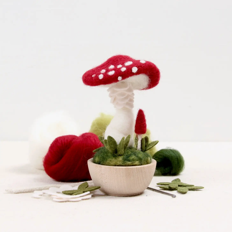 These whimsical needle felting kits include all the supplies to make your own adorable creations: felting needle, foam cushion, roving, cotton stems, felt accents and, if pictured in kit, a wood turned bowl. You will need scissors or wire cutters. Glue is optional. Instruction sheet includes step by step instructions and photos.