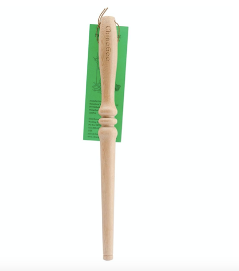 Stop using your thumb to wind that center-pull ball of yarn. The ChiaoGoo Nostepinne (old Norwegian hand tool, which translates to Nest Stick) can do the job -- without changing the twist of the yarn. It is portable and quite easy to use. Approximately 11 inches (28 cm) long, this tool has a nice smooth finish but not too smooth. Long enough to wind a large ball of worsted or even chunky yarn. The handle has loop through it so that you can hang the tool on a peg.
