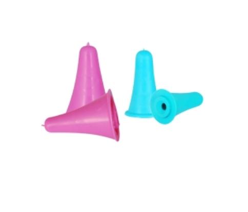 Comes in two sizes (Large and Small). Pliable point protectors for the ends of knitting needles. Helps prevent stitches from falling. Stays on, even in your bag. Cone shaped and easy to spot bright color.
