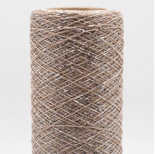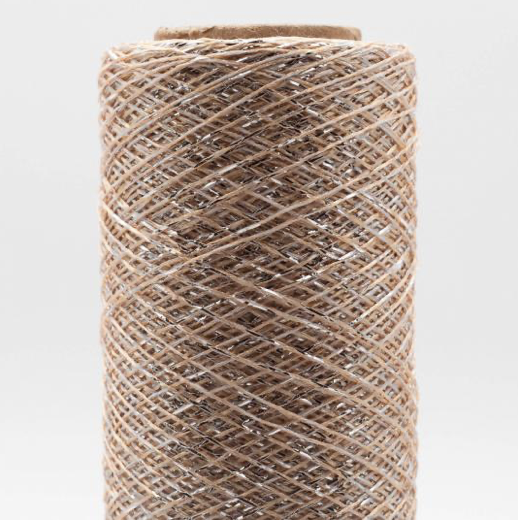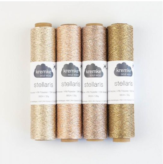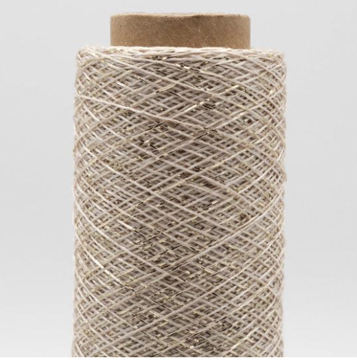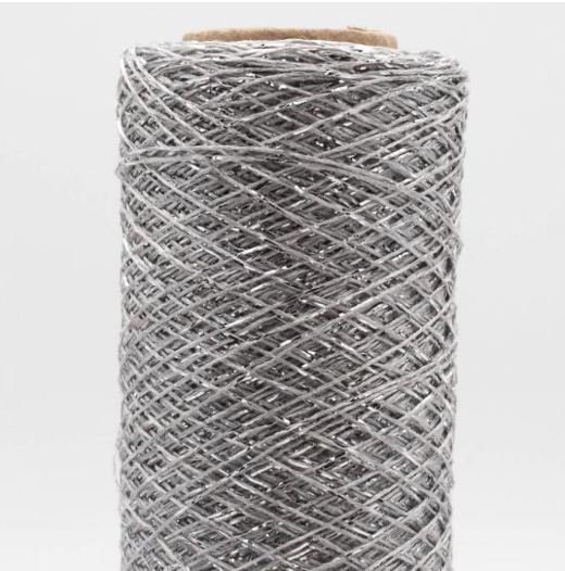 Soft and easy to work with. If knitted alongside with other yarns it adds nice sparkles to the knitting. But you can also work with it with 2 or 3 threads to create stripes or contrasting rims. It is made with metallized Polyester and spun in Italy.