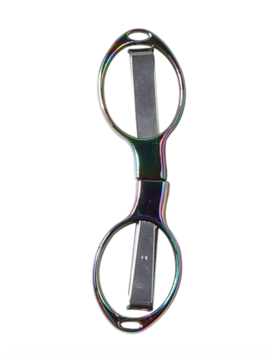 Rainbow Folding Scissors from the Mindful Collection. Pretty & practical, colorful scissors with a shiny metal finish. Conveniently folds down for protection from sharp points.