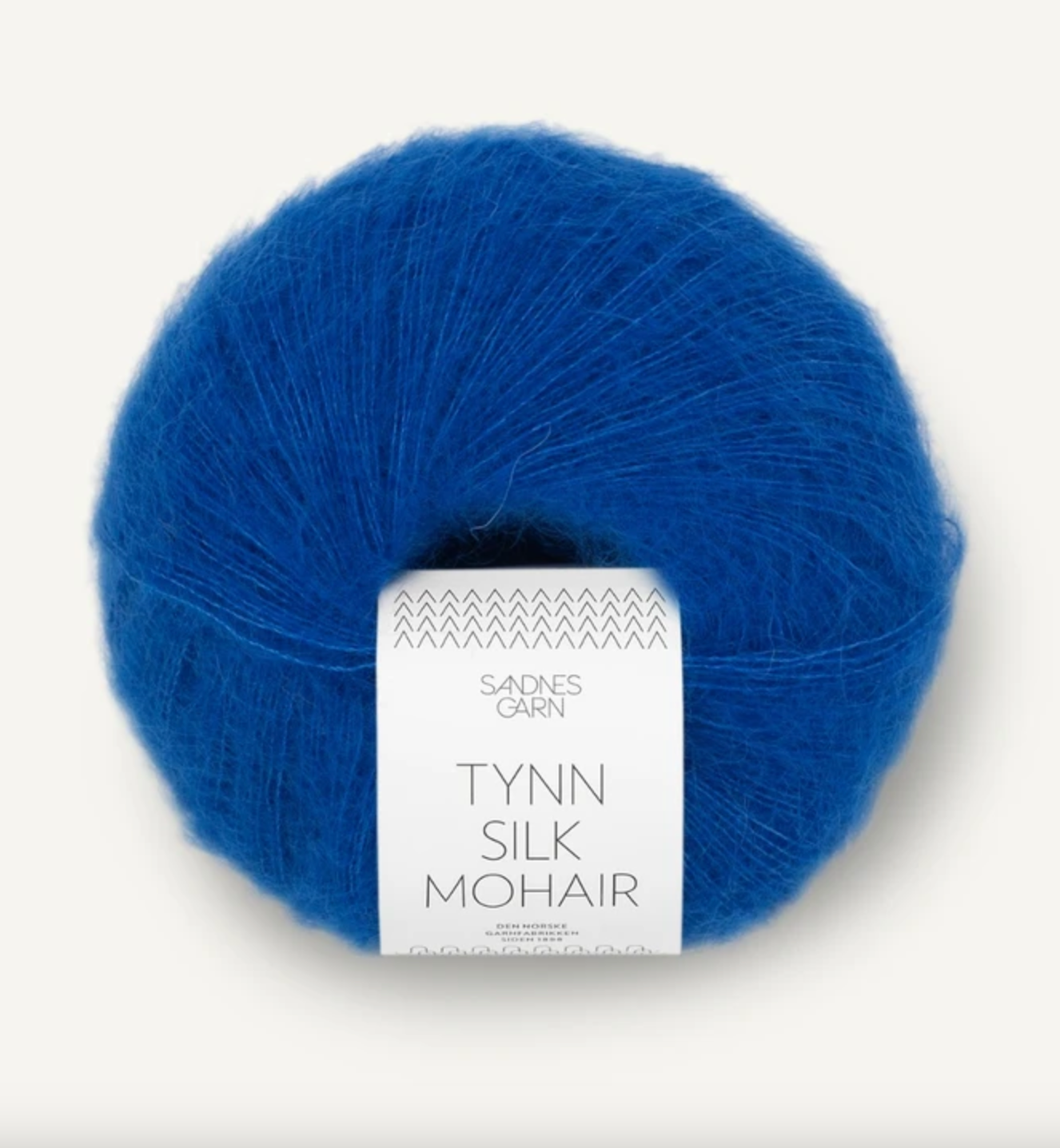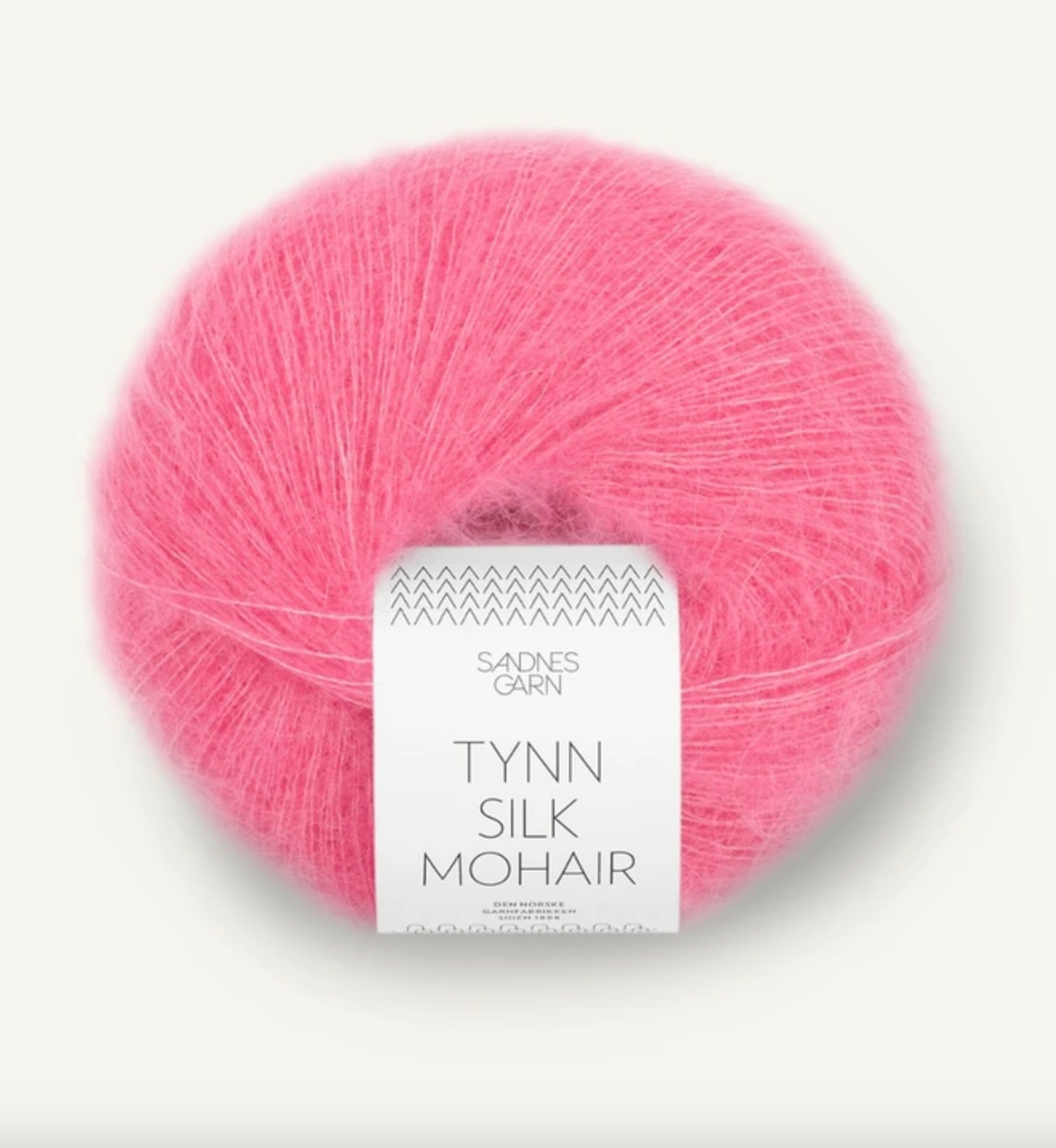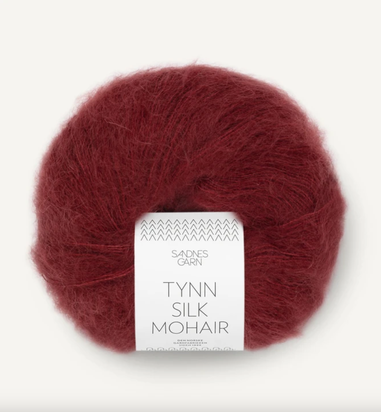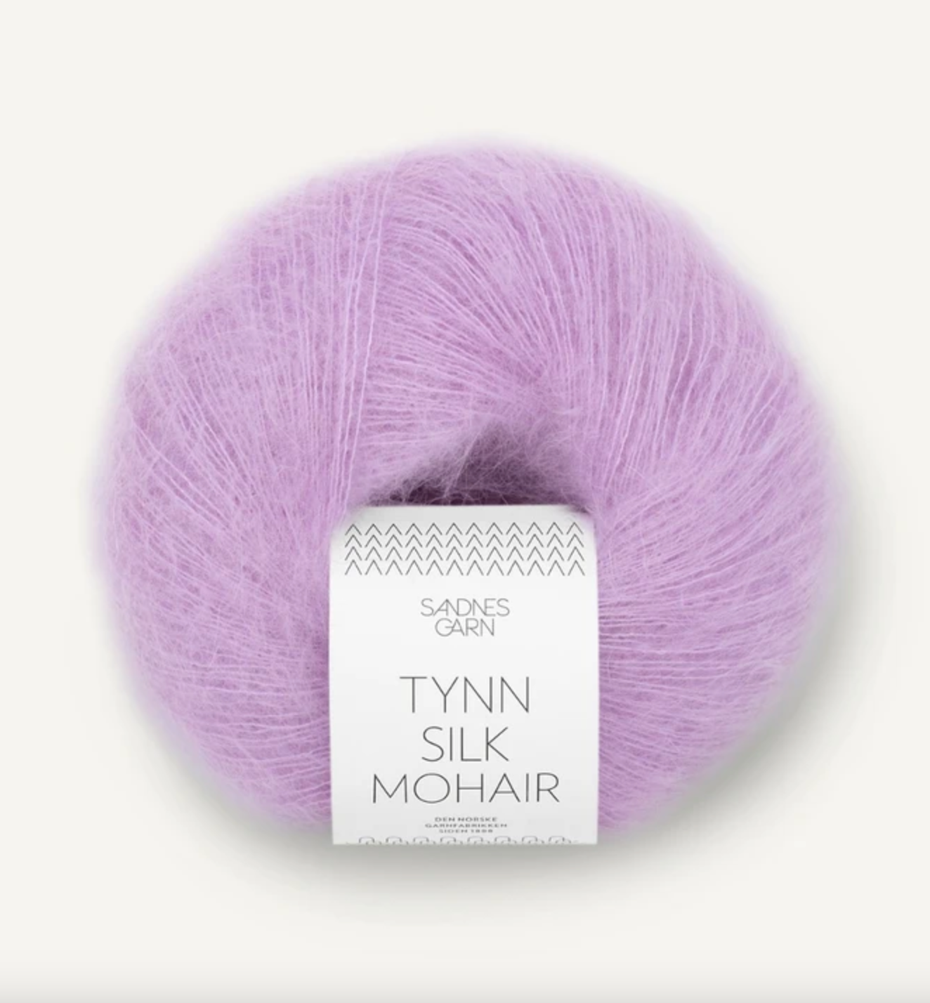 Tynn (Thin) Silk Mohair creates flattering garments and is ideal for knitting along with other yarns for exciting effects. Tynn Silk Mohair contains 57% mohair, 15% wool and 28% silk.