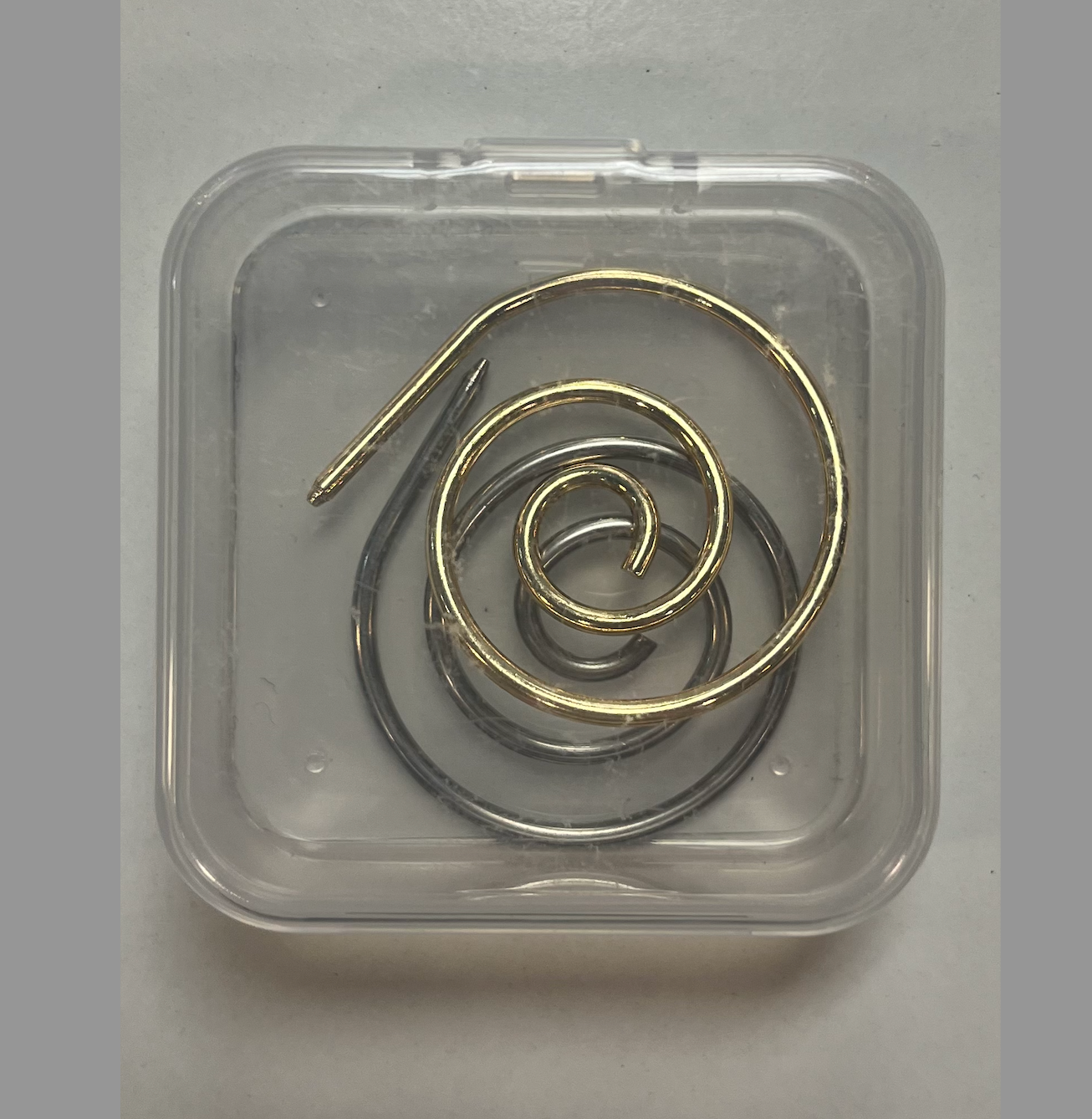 Spiral Cable needles. 2 per package, 1 silver, 1 gold.