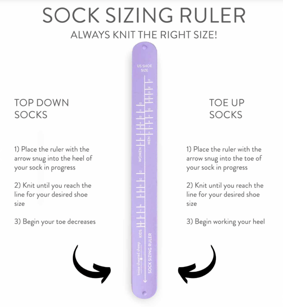 - Works for both top down or toe up socks